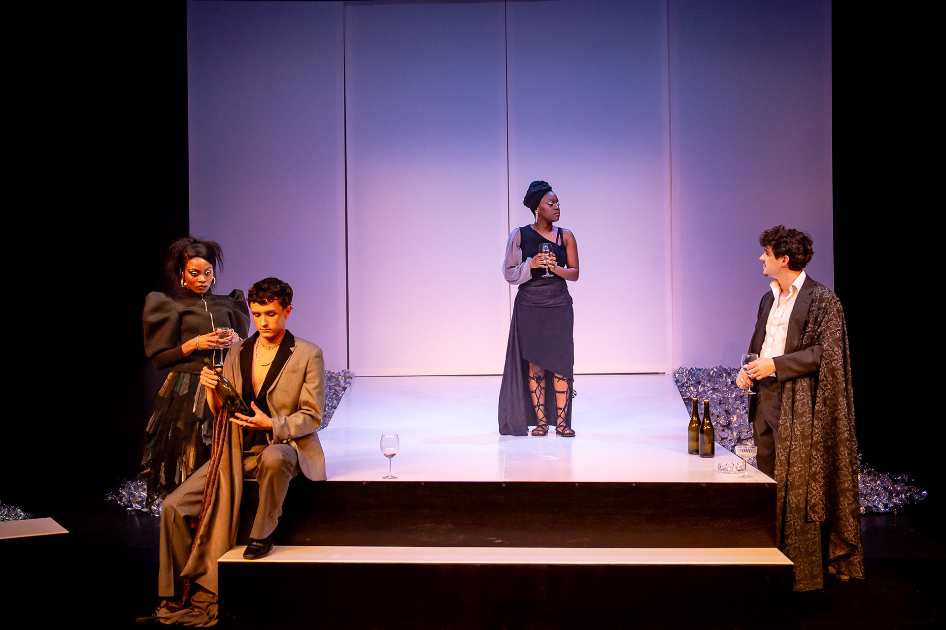 On this production I was the Wardrobe Supervisor responsible for sourcing, budgeting, and fitting all costumes and leading a team of a Dresser and Maker/Assistant/Dresser. This production included both stylized and live blood, water, and projected scenes filmed in advance.